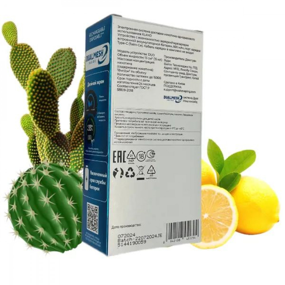 Технические характеристики WAKA XLAND 15000 - Кактус Лимон